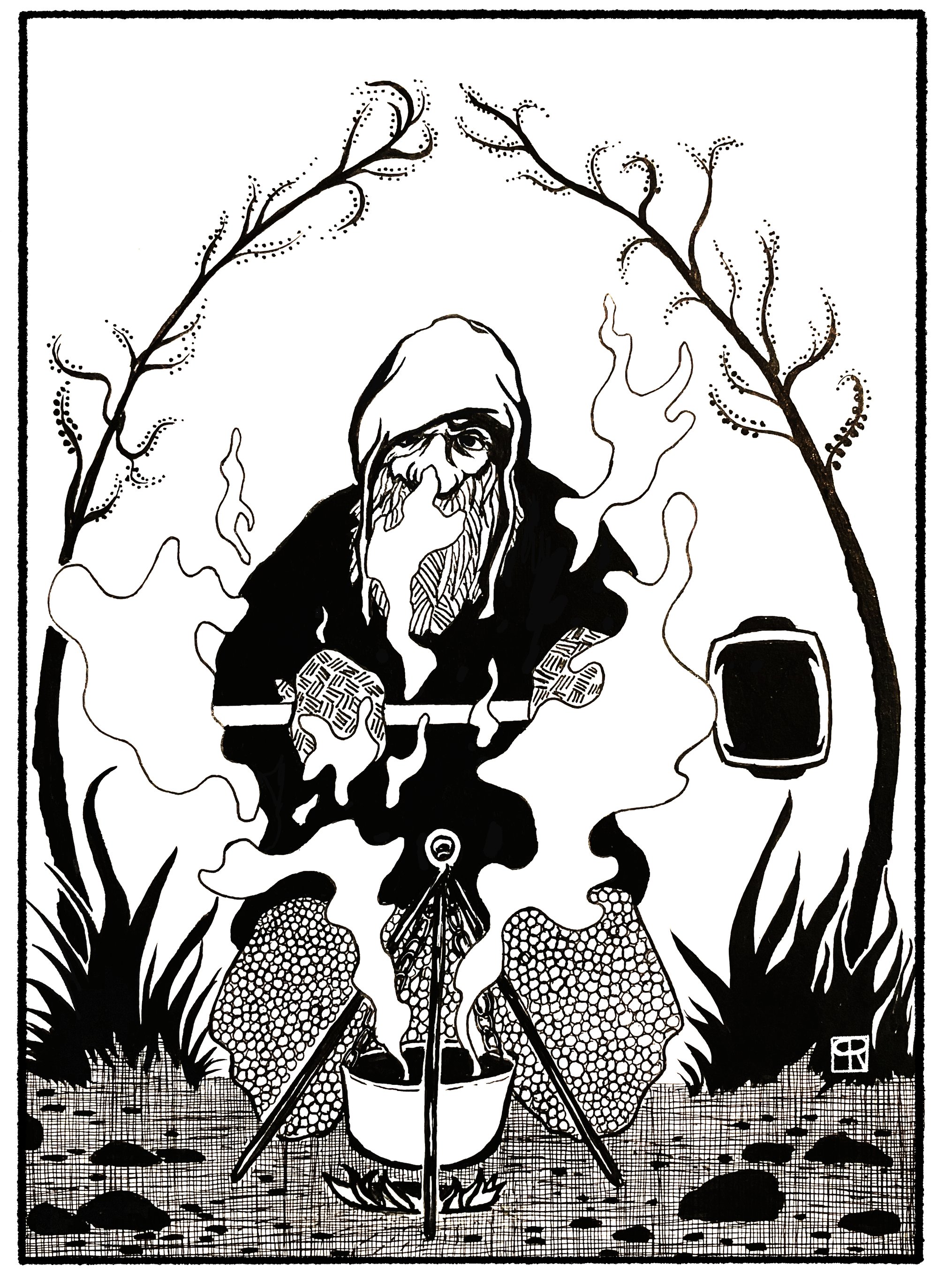 5x7 high quality reproduction print of original ink drawing.